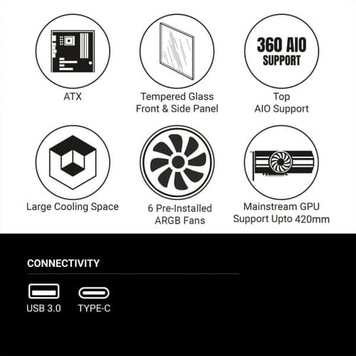 | Pre-Installed Fan | x 3 Bottom Fans, x 2 Side Fan |