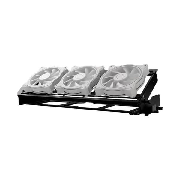 Two rotatable radiator/fan brackets included out of the box for showcasing cooling components at unique angles.