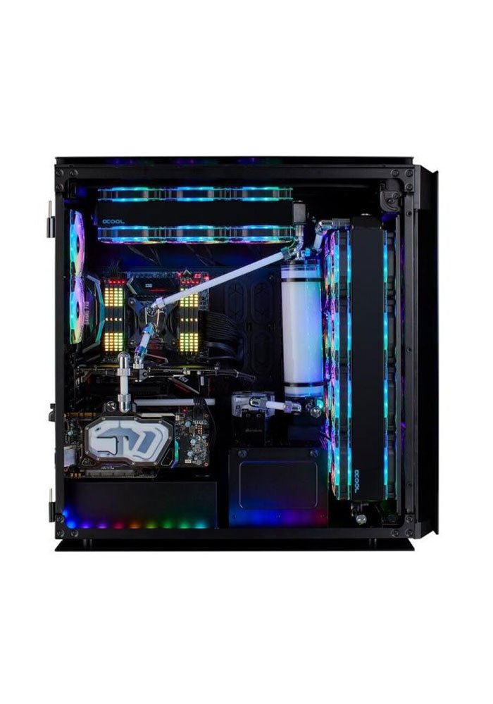 FeaturesObsidian Series 1000D Super-Tower CaseThe CORSAIR Obsidian Series 1000D is the ultimate super-tower PC case with iconic tempered glass design, smart lighting and fan control and the ability to house two systems simultaneously for the most epic builds.THE ULTIMATE SUPER-TOWER PC CASEIconic and clean exterior lines, four smoked tempered glass panels and seamlessly integrated RGB lighting make the Obsidian 1000D the best-looking Obsidian Series case yet.STREAM AND GAME SIMULTANEOUSLYThe Obsidian 1000D can fit both a complete E-ATX and Mini-ITX system concurrently, so you can stream and game smoothly from one enclosure. Two motherboards, two power supplies, two full PCs in one case.MASSIVE COOLING OPTIONSUp to 18 fan mounts and room for up to four 480mm radiators simultaneouslyBUILT-IN SMART LIGHTING AND FAN CONTROLAn integrated CORSAIR Commander PRO fan and lighting controller grants superior control over almost every aspect of your system via CORSAIR iCUE software.TRIPLE-CHAMBER DESIGNKeeping a 1000D PC build tidy is effortless with the included French-door-style rear storage compartment, E-ATX motherboard and dual-purpose Mini-ITX motherboard tray and PSU cover.FUTURE-PROOF FRONT PANELAn RGB LED lit front panel includes two USB 3.1 Gen-2 Type-C ports alongside four USB 3.0 ports, for future-proof and backward compatible connectivity.BUILD IT BETTERA rotatable GPU bracket for standard or vertical GPU mounting and a wealth of pump and reservoir fit points throughout the case make the 1000D the most flexible and modular CORSAIR case ever.TELESCOPING RADIATOR TRAYSInstall fans and radiators effortlessly with smooth, tool-less modular radiator mounting trays.SIZE MATTERS The massive 1000D features storage space for up to five 3.5? HDDs and six 2.5? SSDs, each in their own dedicated compartments.