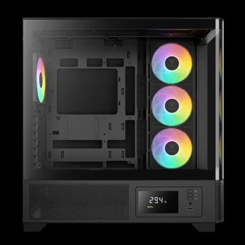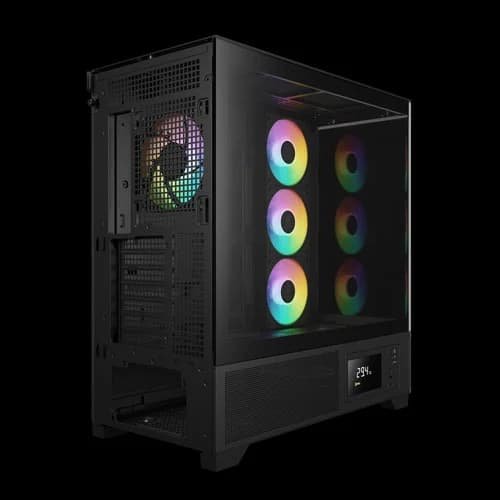 4 ARGB PWM FANS WITH BUILT-IN FAN HUBFeaturing four built-in silent PWM ARGB fans, the case provides exceptional lighting and finely tuned airflow with minimal noise. The included 8-port PWM ARGB fan hub allows for easy management and synchronization, ensuring a cohesive lighting setup that perfectly complements the high-performance, quiet operation of the fans.