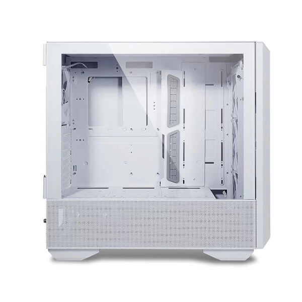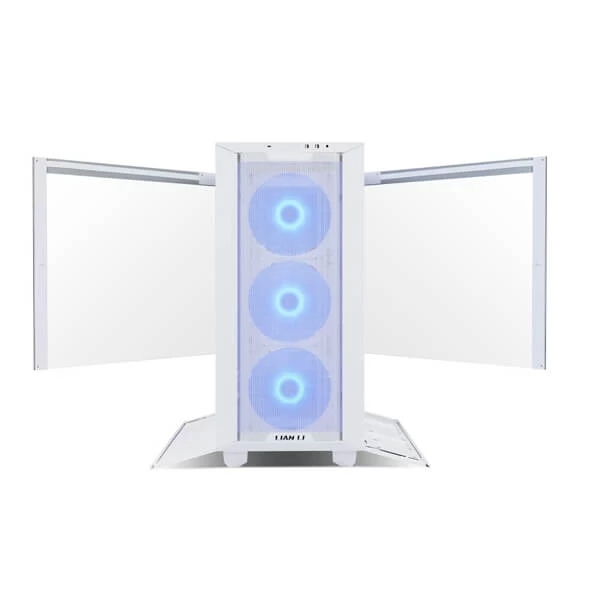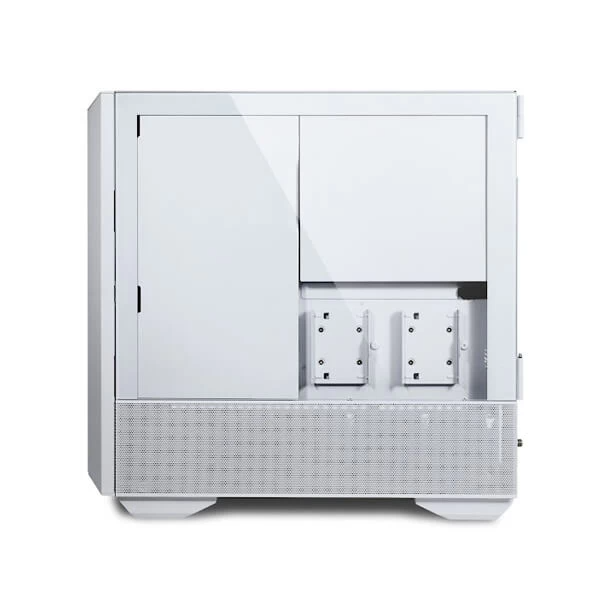 Lancool III has a fine mesh top, front and lower sides panels. Opening the left and right tempered glass panels is easy with the front aluminum door handles.