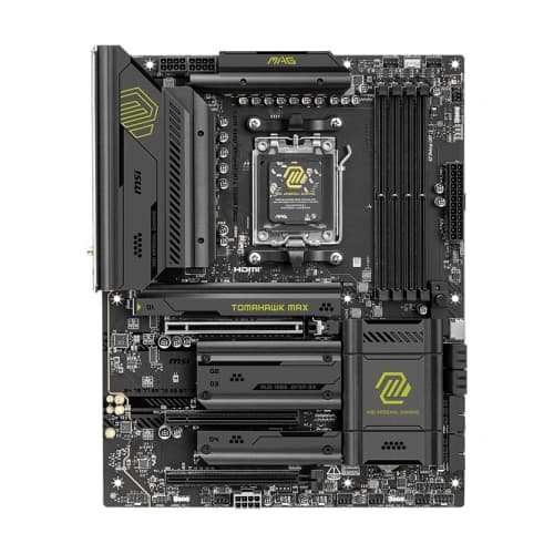 MAG B850 TOMAHAWK MAX WIFI is designed for gamers with a stable, durable and DIY friendly foundation for their PC builds. Coming up with true Wi-Fi 7 solution, 5G LAN, USB 20Gbps, PCIe 5.0 solutions, Supplemental PCIe Power, and exclusive EZ DIY features, it’s ready for the battlefield of AMD Ryzen? 9000 series processors.MSI’s mainstream MAG series epitomizes stability and durability and is built to withstand the most intense gaming sessions. The entire lineup features robust construction with metallic-like hardness and excellent heat dissipation, ensuring stability for all critical gaming components.MSI motherboards are designed with advanced hardware and technology, well-supporting the demanding computing usage of gaming and AI. Moreover, we also introduce AI to MSI Center and BIOS, making everything more effortless than before.14+2+1 Duet Rail Power SystemUnleash and sustain maximum performance with a flagship VRM design built with a total of 14+2+1 digital power phases. Combining dual power connectors and 80A Smart Power Stage, MAG B850 TOMAHAWK MAX WIFI is ready for the challenge of high-end processors.OPTIMIZED PCB SOLUTIONThe PCB design has been optimized for higher bandwidth and faster transfer speeds, which is also beneficial for reliable circuit transmission.M.2 Shield FrozrStrengthened M.2 thermal solution helps keep M.2 SSD safe and ensures incredible performance.THE NEXT GEN WI-FI SOLUTION ? WI-FI 7Wi-Fi 7 is the latest wireless solution that takes a huge leap forward with multiple improvements to meet the traffic demand brought and the growing number of wireless devices.