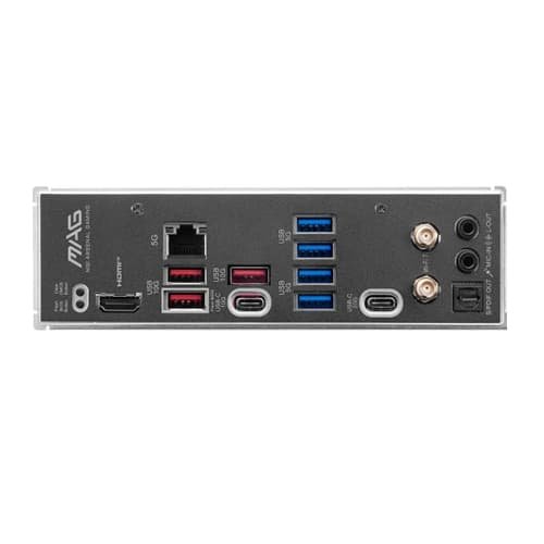 | Back Panel I/O Ports | Clear CMOS Button 5G LAN USB 10Gbps Type-A USB 5Gbps Type-A Audio Connectors Flash BIOS Button HDMI? USB 10Gbps Type-A USB 10Gbps Type-C USB 20Gbps Type-C Wi-Fi / Bluetooth Optical S/PDIF Out |